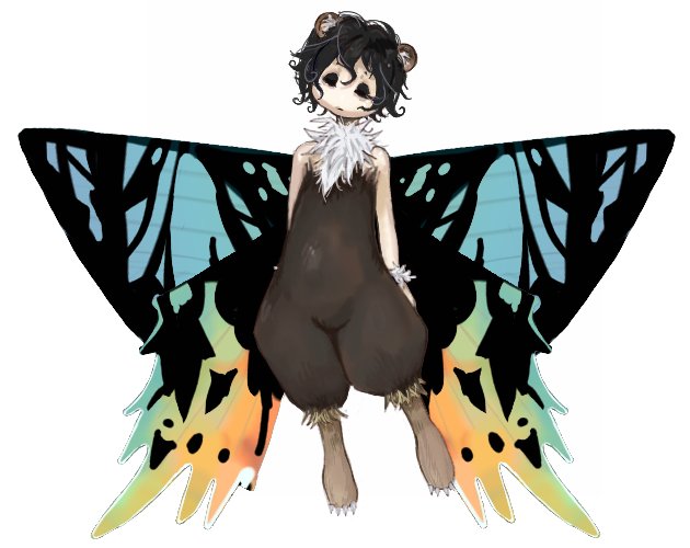 髪は短く触覚も消えて、熊耳と熊しっぽ追加。
