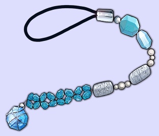 シルバーのビーズを加え、簡単なつくりのストラップを2つこしらえる。