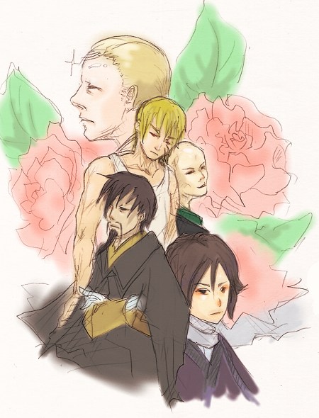 まだ夜も明けきらないうちに、クインスは簡素な寝床を滑り出た。 白々とした陽が眼に届く前に、さっさと顔を洗ってしまいたかったのだ。 他の3人の眠りを妨げないよう、息を潜めるようにそっと足を踏み出し… そしてふと、昨夜の出来事を思い返す。 振り返り、野営地にくすぶる火の横へ視線をやると、静かな瞳で見返すジャファルの姿があった。 軽く会釈すると、僅かな微笑と会釈が戻ってくる。 『やはり彼は、眠らずに…』 ぼんやりと考える。 昨夜少しだけ交わした会話、その中で一瞬だけ見せた瞳─遠くを見つめるような表情が、 なぜだかクインスの脳裏に焼きついていた。 幾度となくめぐり来る静かな夜、彼は何を思って過ごしているのだろう。 『一体過去に何が……などといった詮索は、下世話でしょうね』 頭をもたげようとしていた好奇心を追い払い、そのまま静かに野営地を離れる。 ------ クインスはジャファルのことを殆ど知らない。 いや、ロジュのことも、クニーのことも。 人波の中、ぼんやりと休憩していたクインスに声をかけてくれたのが、エルフのクニーだった。 「一緒に行かないか」 シャープな体躯、飄々とした雰囲気、そして少しそっけなくも思える言葉。 それは話に聞いたエルフそのもので、クインスはひっそりと感動したものだ。 だが突然のことに、なかなか返事は喉から上がってこなかった。 そんな戸惑っていた心を、一度に解きほぐしてくれたのがロジュだった。 「ロジュだ、よろしくな!」 笑ってこちらにやってきた少女は、あちこち包帯に巻かれた痛々しい姿ながら、しかしとても眩しく… まともに見たことのない太陽を直視した気持ちになり、髪に隠された目を、つい細めてしまった。 夜の生き物が光に向かい、火にとびこむように。 出来ることなら共に歩いてみたい、この瞬間そう思ったのだ。 ジャファルは…… 「ジャファル。彼は…夜。」 水音を探り歩きながら、ふいにクインスは呟いた。 全身に施されたボディペイント、常に共にある2人、 外見の差異から兄妹や親子には見えないが、彼はきっとロジュと同胞なのだろう。 だが2人の持つ空気はまるで正反対だった。 彼は、静かな夜。 夜の奥に何が潜むものか─ 思考はそこで止まる。 クインスは、穏やかなせせらぎを奏でる川辺へたどり着いていた。 無言のまま腰のポーチから紐を取り出すと、量の多い髪を1つに纏める。 さらされた瞳に、顔をもたげてきた朝の光が突き刺さるようだ。 眉をひそめながらそっと水をすくい、顔を洗い流していく。 体温の低い指先には温く感じた水だったが… 「ああ。顔に触れると、流石に冷やりとしますね」 だが、まとわりつくような朝の空気、そして余計な考えを払うには丁度良い冷たさだった。 触角まで水で洗い終えると、クインスはやっと髪を下ろし、”ほう”と一つ息をつく。 「さあ、そろそろ皆も起きるころでしょうか」 ブリキの缶に水を汲みいれ、元の野営地へと引き返す。 その足取りは、いつもと変わらず静かで、そして緩やかだった。