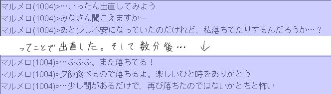 真夜中から朝方にかけて、絵チャットコミュの絵チャットに参加。 本当はもっと早くに向かいたかったのだがのぅ。 都合でどうにも。 だがしかし、一人絵チャだった。 私一人、どこか分からない次元に飛ばされておったらしい。 なんてこと!(気づくの遅い) 返事も会話もない皆の様子に怯えることも、寂しがることもなかったのだな。 ふふふ。 …今度はみんなで遊びたいのぅ。 少しだけ戻った皆のいる絵チャは、激しく混沌でティッシュが大活躍しそうな空間だった。 おじさん困るでしかし。 さて、朝の空気に触れて落ち着こう。ふぅ。