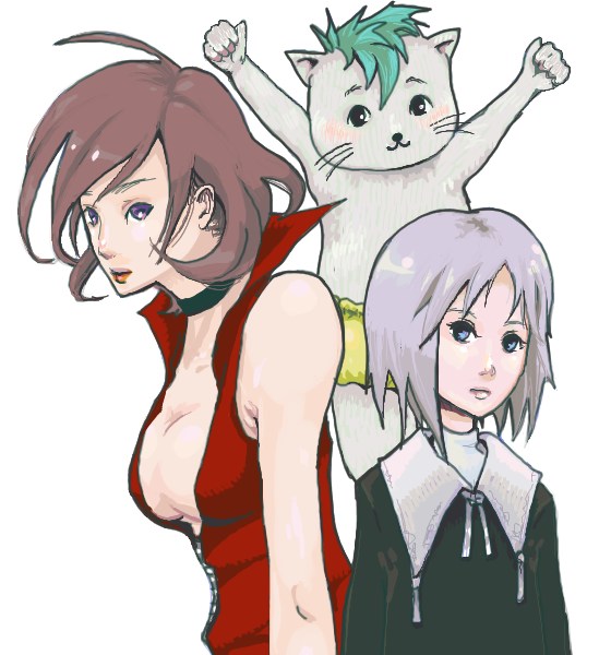 …… (尻尾をゆらゆら揺らしながら、何か落描きしているようだ。 時々顎の下に手をやって考え込んだり、触角がピンと伸びては緩みを繰り返している) (クラリスさん、ソウさん、薫子さん クリックすると原寸) --------(30日追記)--------- 「……」 「?ロジュ、どうかしましたか」 左方をじっと見つめる仲間に、クインスは歩み寄って声をかける。 大きな瞳が向けられた先を辿れば、豊かな流れをたたえる川。 「視線を…感じた気がして」 戸惑うように答えた少女は、こちらを見上げると大きくかぶりを振った。 「いや、気のせいだろう。気にするな」 「気のせい…ですか」 少女が去った後も、クインスはじっと川の際、そして向こう岸に視線を延ばしていたが… そもそも視力の弱い眼に映るものは少なく、 諦めるように踵を返した。 戦闘を終えた後、ささやかな休息時間の、ささやかな出来事。 ジェイク・バーティリーの日記